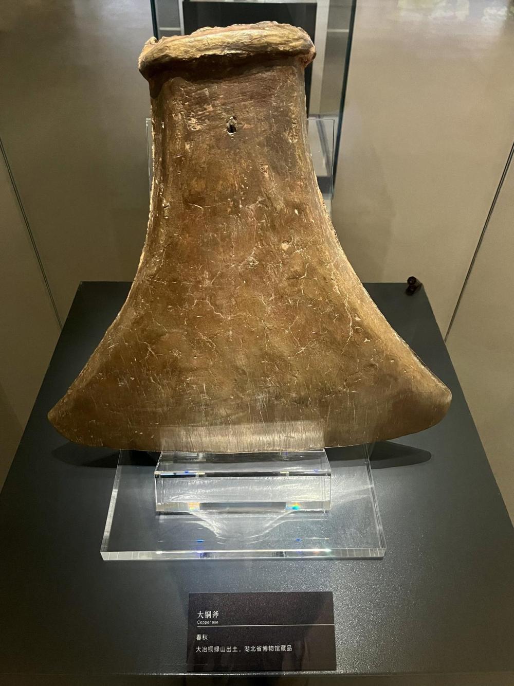 6月9日,在铜绿山古铜矿遗址新馆展厅展出的铜斧。