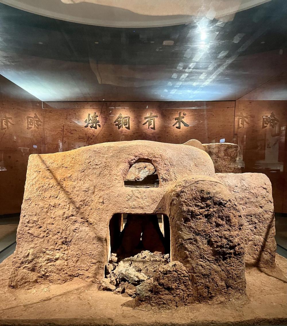 6月9日,在铜绿山古铜矿遗址新馆展厅展出的冶铜炼炉。