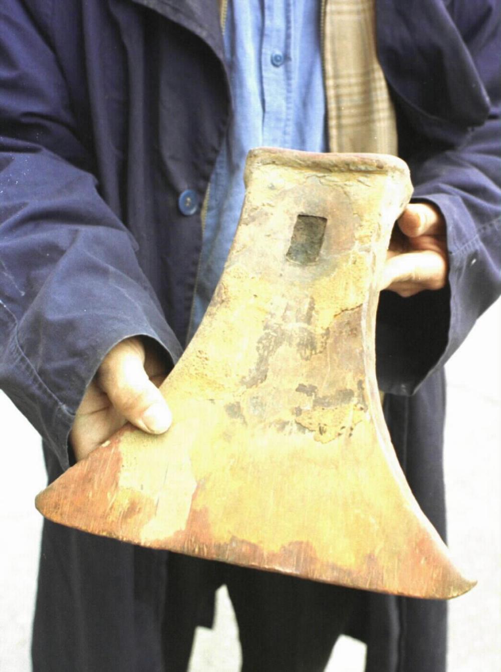 当时,大冶有色金属公司铜绿山铜铁矿企工人在铜绿山露天剥离和采挖过程中,先后发现冶炼渣、铜斧等物品,此外,还发现古坑木、古坑道等遗迹,似乎是一片当地人称为“老窿”的古矿井。有的古坑木被当地老百姓捡回,当作生火做饭的极好燃料。此后,湖北省博物馆还从当地居民手中征集了一件最大铜斧,重达16.3公斤,被誉为“中国第一斧”!