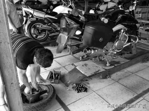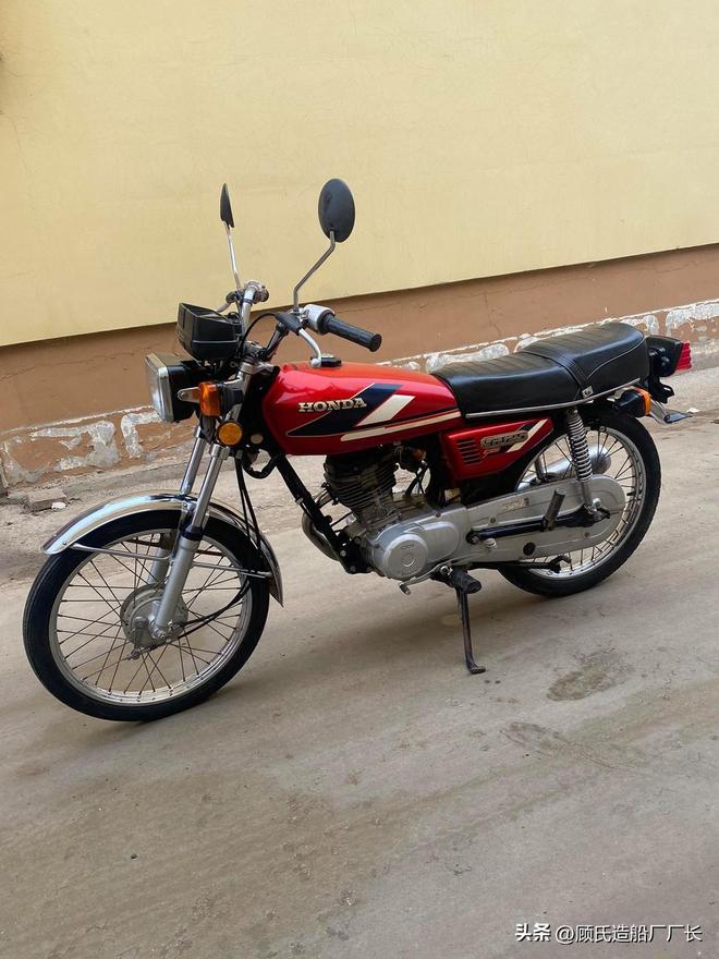 张家院子内停放着一台本田125型两轮摩托车,车边上有钳子、螺丝刀等工具。