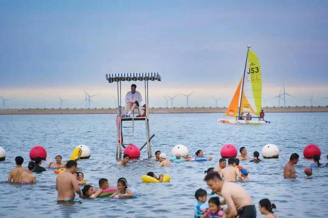 金山城市沙滩泳期预计下月起开放。可以踩在细软的沙滩上伸手触摸海风,穿上泳衣带上泳圈,跃入大海感受清凉一夏。